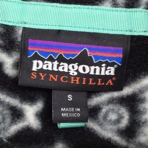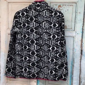 Patagonia Womans S Synchilla Fleece Snap Closure IKAT Fish Print Black White Pin