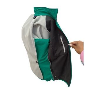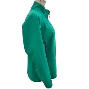 The emerald green color and solid pattern of the jacket make it a stylish addition to any wardrobe. It has long sleeves, a regular fit, and a short jacket/coat length. The garment care is simple, as it is machine washable. This windbreaker style jacket is perfect for outdoor activities, city life, or shell protection.