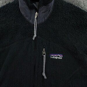 Patagonia Women Jacket Black Full Zip Fuzzy Soft Small USA Made Big Pockets
