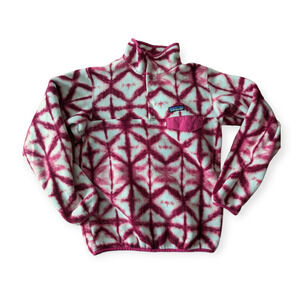 Patagonia Women 's Synchilla Snap Pullover Fleece Diamond Shibori White Pink XS