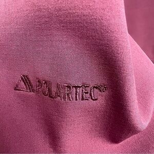 Polartec Windbloc stretch-woven polyester outer stops wind; moisture-wicking fleece grid interior helps keep you dry