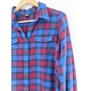 Patagonia Women's Blue Red Plaid Flannel Button Down Shirt 4 Long Sleeve Flannel