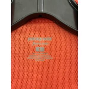 The product is a Patagonia Women's Capilene Baselayer Top in size Large, featuring a solid orange color with a 1/4 zip thermal long sleeve design. Made from 100% polyester, this pullover style top is suitable for both activewear and casual occasions, offering a regular fit for comfort. The mock neck and long sleeves provide extra warmth, while the zip closure allows for easy ventilation. Perfect for outdoor activities or everyday wear, this Patagonia Capilene Baselayer combines quality and style.