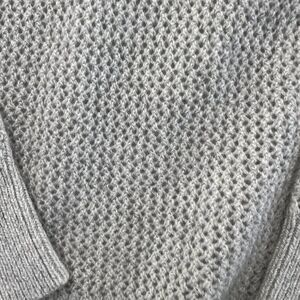 The Patagonia sweater offers a sophisticated look with its textured knit design. Crafted for women, this XS size sweater is an ideal choice for maintaining warmth during cooler weather, while ensuring a stylish appearance. The neutral gray tone allows for versatile pairing with various pieces in a wardrobe.