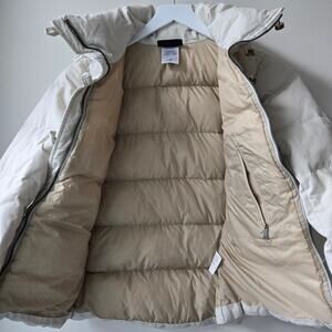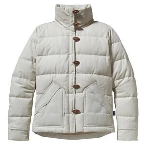Patagonia womens off white/cream toggle down puffer coat. This jacket is lightweight, so plush, stylish, and warm. Rare, sold out style.
