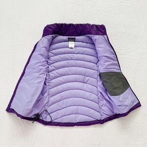 Patagonia Women's Down Sweater Vest in purple coloration. Everyday casual or active puffer vest.