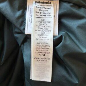 Patagonia Women's Downdrift Parka Small Full Length Hooded Down Jacket Green