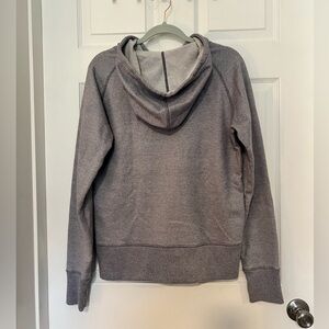 Classic full-zip hooded sweatshirt by Patagonia in a slate blue melange. Ideal for layering and casual wear. Medium weight, gently worn, chest measures 21.5” (laid flat), US women’s size L.
