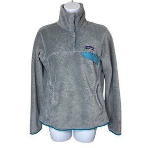Patagonia Women's Gray Teal Retool Pullover Fleece Snap T Fleece Sz S Small