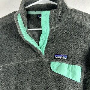 Patagonia Women's Grey Blue Jacket Tool Snap T Fleece Pullover- Size Medium.