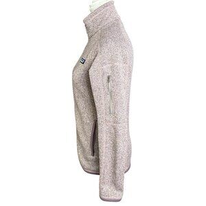 Patagonia women's size small luxury jacket, it is the Better Sweater style, color is Hazy Purple, high stand-up collar, long sleeve, fleece and knit fabric, zip pocket on sleeve, front zip hand pockets, contrasting trim and cuffs, mid-length with full zip closure. Materials 100% polyester. Care machine wash cold, tumble dry low. Condition preloved very good as shown in pictures. Please preview the measurements to ensure fit this runs slim. MFSR $159.00 Spring 2022 Style 25543