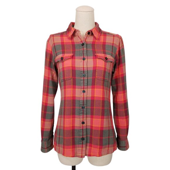 Patagonia Women's Long-Sleeved Fjord Flannel Shirt Red Gray Plaid Sz 4