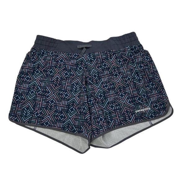 Patagonia Women's Nine Trails Geometric Pattern Navy Running Shorts Blue Size S