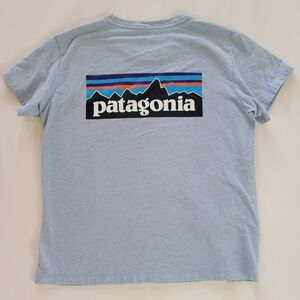Patagonia Women's P-6 Logo Responsibili-Tee Short Sleeve Small Shirt Steam Blue
