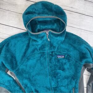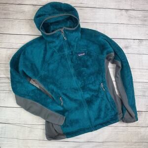 Patagonia Women's R3 Hi-Loft Hooded Jacket Full Zip Fleece Teal Gray Size Medium