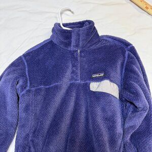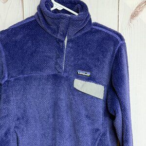Patagonia women’s fleece, Re-Tool pullover, quarter zip purple blue, high pile cozy layer, medium Patagonia top, warm winter sweater #Patagonia #WomensFleece #ReTool #QuarterZip #HighPile #PurpleBlue #SizeMedium #OutdoorStyle