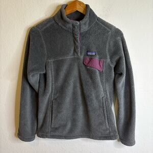 Patagonia Women's Re-Tool Snap-T Fleece Pullover Gray with Burgundy Size S