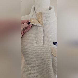 Soft cream fleece with Patagonia branding. Ideal for warmth.Deep-pile Polartec® Thermal Pro® 100% polyester fleece (51% recycled) has extra-long fibers to retain warmth