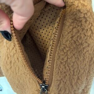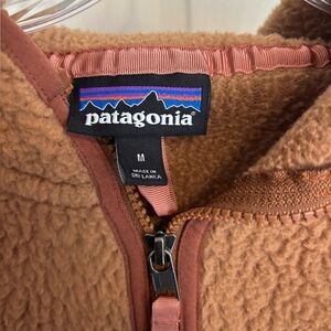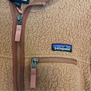 Patagonia Women’s Retro Pile Brown Shearling Fleece Hooded Jacket. Size Women’s Medium. Zippable hand warmer pockets. Mesh lined chest pocket. Super warm and cozy! Please note, there is a TINY tear on the left cuff. This may be able to be mended, I am not handy enough to try. Not noticeable when jacket is on. Refer to photos.