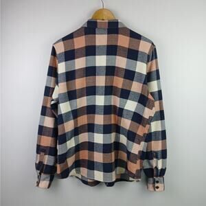 Patagonia Women's SZ L Women's Fjord Flannel Shirt Navy Peach Buffalo Check