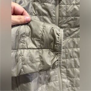 2 zippered handwarmer pockets have cleanly finished zipper garages; zippered internal chest pocket doubles as a stuff sack with a reinforced carabiner clip-in loop