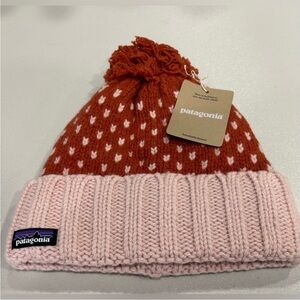 Patagonia Women's Snowbelle Beanie Ridge Burl Red NWT Recycled Wool Orange