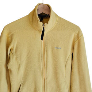 Tags: women's fleece, synchilla, patagonia, women's patagonia, patagonia jacket, full zip, yellow, mustard, synchilla fleece, fleece layer, layering, fleece, medium, outdoors, athletic