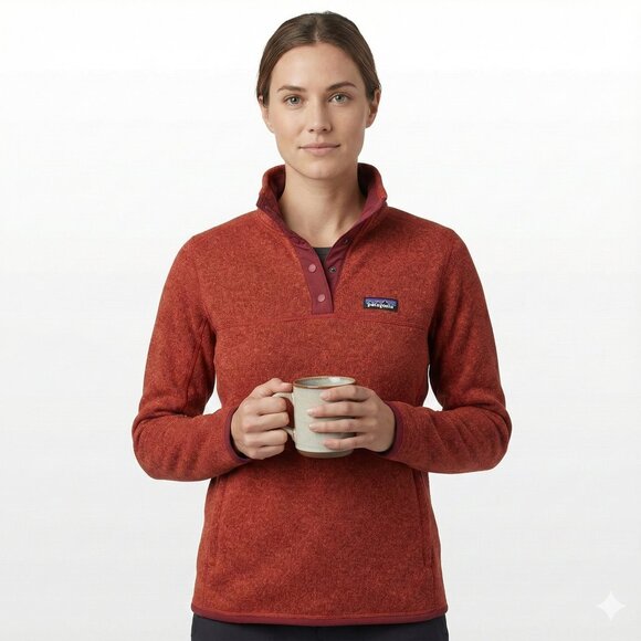 Experience the legendary warmth and style of this crimson red Patagonia Better Sweater Marsupial Pullover. Crafted from soft interior and knitted exterior its classic design features a four-snap nylon placket and cozy stand-up collar. This Women's XS gem is perfect for adding a vibrant pop of color and comfort to your outdoor escapades or simply enjoying a relaxed day indoors. The garment is a crimson red color. A true staple, it effortlessly blends rugged utility with an inviting touch of coziness.