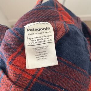 Patagonia Worn Wear Fjord Flannel Shirt Womens Small Blue Red Plaid Organic Cotton