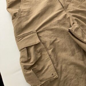 • Two change-safe front pockets; back pocket with hook-and-loop closure; zippered right-thigh pocket; trash-keeper pocket