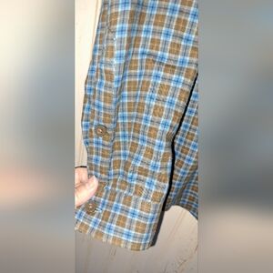 The Patagonia Worn Wear Plaid Organic Pima Cotton Shirt is a stylish and sustainable choice for the outdoors. Made from soft and lightweight flannel fabric, this shirt features a colorful plaid pattern perfect for outdoor activities like hiking. In excellent condition.