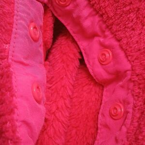 Stand-up collar has doubled fleece for warmth; front placket hides the 4-snap closure and is reinforced with nylon