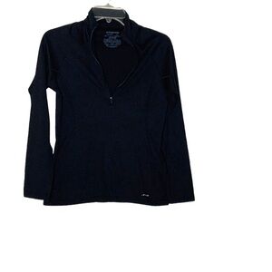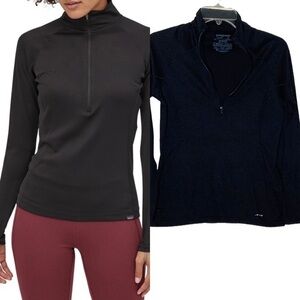 Patagonia black long sleeve high neck sweater. Front 1/3 zipper closure. Style is Capilene3. Front label is peeling off. otherwise in excellent preowned condition