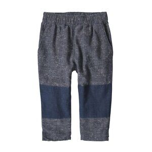 Patagonia navy blue breezy lightweight pants in toddler size 4T. Style #60330, "Lightweight Hemp Pants." Fabric is 55% hemp, 45% organic cotton. Pockets and elasticized waistband, super cute natural fiber style. GUC; slight all-over wear, and some wear at the knees and the patterned part of the fabric at the rear (see photos).