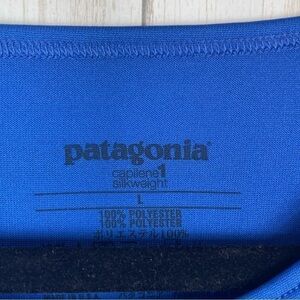 Patagonia blue silk weight top in size large. Gently preloved in great condition. Soft. Great for the gym and outdoor activities!
