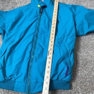 Patagonia turquoise jacket, vintage Patagonia bomber, retro windbreaker jacket, women’s outdoor gear, teal zip up jacket, 90s style Patagonia coat, ribbed cuff bomber jacket, classic Patagonia outerwear, casual lightweight jacket, sporty turquoise windbreaker