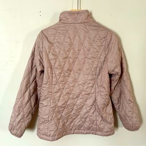 Lavender/pink girls nano puff jacket…with an adorable ditsy floral print that yours-truly designed. It’s cute right? This wasn’t worn much, but it does show wear on the trim of the sleeve cuffs, and has my kiddos name on the interior tag. It can probably be removed. Bit Patagonia coats are mean to be passed along to many owners! See photos.