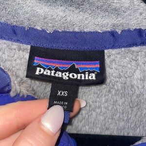 Stay cozy and stylish in this pre-loved Patagonia grey and blue re-tool snap-t pullover fleece sweater in size XXS. Made by the renowned outdoor brand, Patagonia, this sweater is not only fashionable but also functional. The cozy fleece material will keep you warm during chilly days, while the snap-t design adds a unique touch to your outfit. Perfect for layering or wearing on its own, this sweater is versatile and practical for any occasion. This used Patagonia sweater is in great condition and ready to become a staple in your wardrobe. The grey and blue color combination is timeless and easy to mix and match with any outfit. Whether you're out for a hike or running errands around town, this Patagonia pullover will keep you comfortable and looking great. Don't miss out on adding this quality piece to your closet!