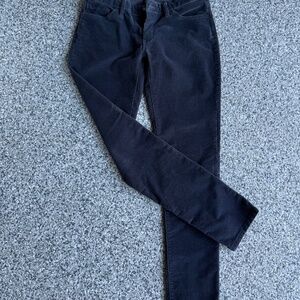 Smolder blue. Low rise, small ridge stretchy corduroy. Length 41", inseam 31.5", ankle 6", waist 31". Like new condition. No snags, tears or stains. Smoke free home.