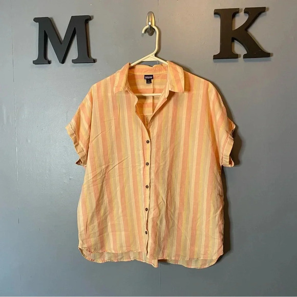 Patagonia lightweight A/C button up shirt peach stripe size large