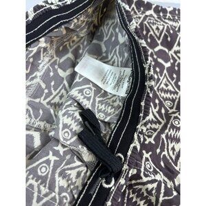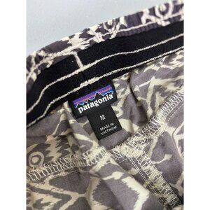 Patagonia brand men's size medium grey and cream fish printed baggies shorts. In excellent pre-owned condition, little to no wear. Lightweight shorts with an elastic and drawstring waist.