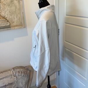 Patagonia polar tech zip up running waterproof breathable light gray jacket Sz L