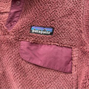 Patagonia re tool snap T maroon burgundy 1/4 snap fleece pullover women's small pit to pit is 17.5