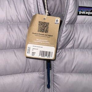 Patagonia vest NEW XS herring grey has a purple tone to it. zip up closure and zip closure pockets