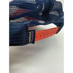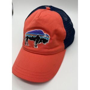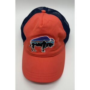 Patagonia Buffalo Bison Embroidered Logo Blue Mesh Orange Trucker Hat Cap