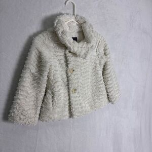 Patagonia Girl's White Fuzzy Zig Zag Pattern Button Front Jacket Size S (8)