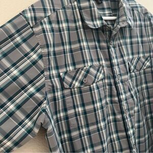 Patagonia M's High Moss Shirt Men Size XL Short Sleeve Plaid Blue