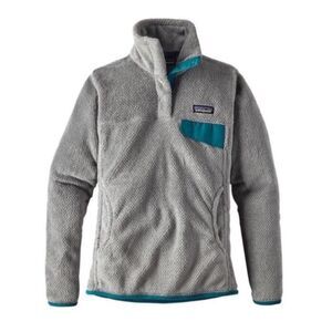 VGUC. Patagonia Re-Tool Snap T Fleece Pullover Gray Teal Quarter Snap Kangaroo Pocket Size XS