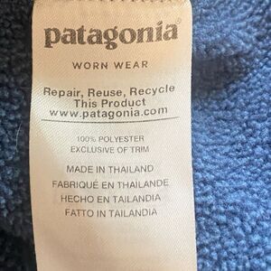 A classic Patagonia essential built for warmth and comfort. This medium-weight pullover features Patagonia’s signature sweater-knit face and soft fleece interior, combining timeless style with technical performance. Finished with a stand collar, four-snap placket, and secure zip hand pockets.DetailsBrand: PatagoniaStyle #: 26010 (WOBL – Woolly Blue)Size: Women’s MediumColor: Blue (“Woolly Blue”)Material: 100 % PolyesterOrigin: Made in ThailandFeatures:¼-snap placketStand-up collarTwo front zip hand warmer pocketsSoft brushed-fleece interior“Patagonia” logo patch on chestWorn Wear / Recycled-content constructionCare: Machine wash cold, tumble dry lowMeasurements (approx.)Chest (pit-to-pit): 18 "Length: 24.5 "Sleeve: 20.5 "Condition