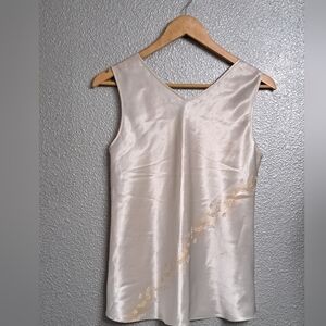 15% spandex, keyhole front, light gold tint over the embossing front & back, rounded hemline, pit to pit 17.5" length 23.5" 0202